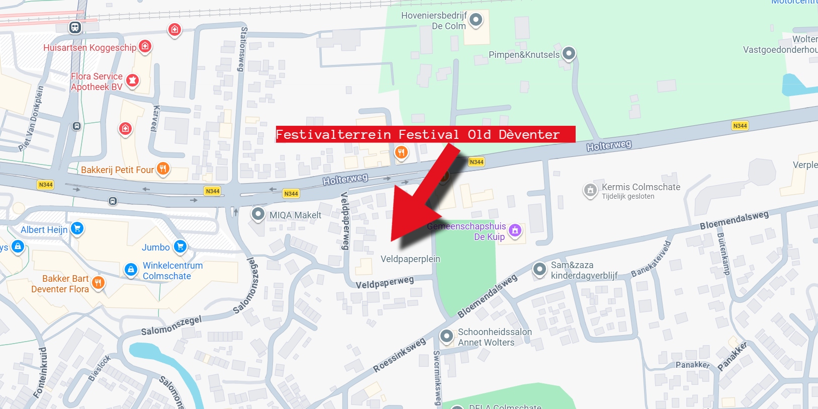 Het evenement vindt plaats op het Veldpaperplein in Colmschate. Het adres is Veldpaperweg.